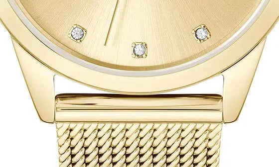 Signature crocodiles detail this stainless steel watch marked by crystal indexes. 30mm case Three hand movement Stainless steel/ionic goldtone plate/crystal Imported